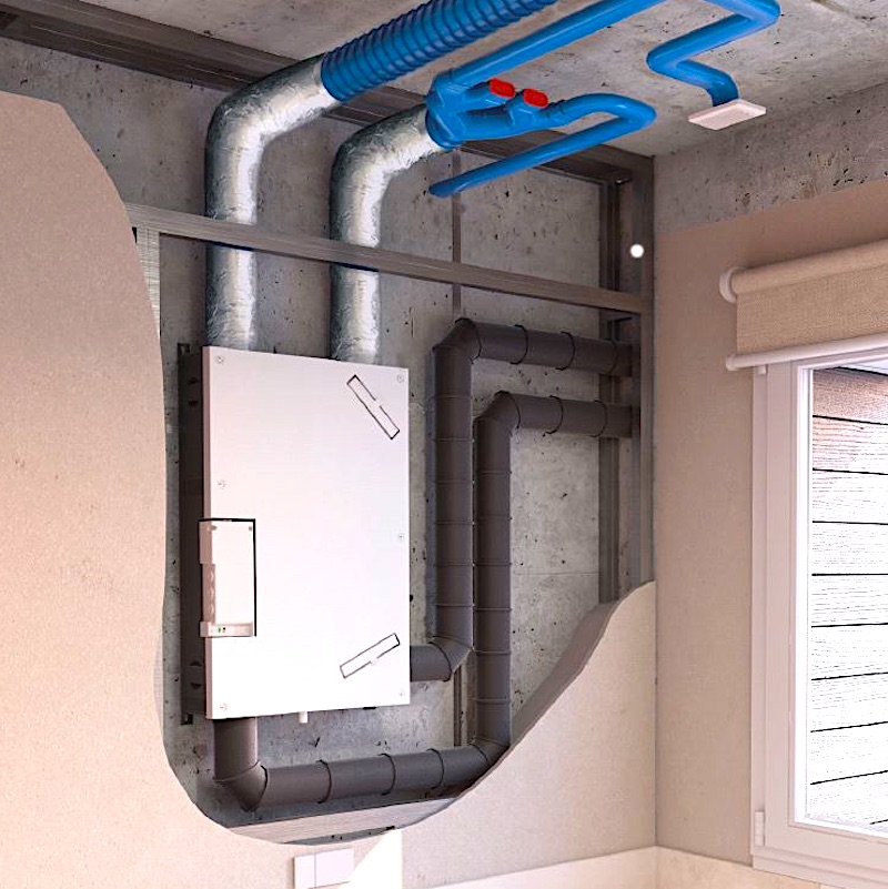 Bild: Moderne Lüftungsgeräte lassen sich dank ihrer kompakten Bauweise problemlos hinter dem Wandaufbau installieren. (Bildquelle: Pluggit, Initiative „Gute Luft, Köln)